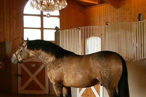 Das Pura Raza Espanola Gestüt Schloss Amerang ist idyllisch in die hügelige Landschaft des bayrischen Voralpenlandes eingebettet genau zwischen München und Salzburg. Es ist im Besitz von Giulia Baronin von Crailsheim Larisch, die Familie von Crailsheim ist in der 23 Generation ansässig auf Schloss Amerang. Das PRE Gestüt liegt nur 800 Meter vom Schloss entfernt. Dort vereinen sich Traditionen mit neuesten Erkenntnissen der Pferdehaltung und Pferdezucht. Seit Generationen ist das Wissen über die Selektion und Zucht erstklassiger Pferde in der Familie weitergegeben worden. Von nichts ist man auf Gestüt Schloss Amerang überzeugter als von einer Rasse: dem PRE. Kein Pferd wurde so intensiv auf Charakter und Schönheit gezüchtet, als der Pura Raza Espanola. Unsere Pferde müssen sich als Allrounder beweisen, sie werden von uns liebevoll empfangen wenn sie zur Welt kommen und mit einem Urvertrauen und einer hervorragenden Erziehung ab Fohlenalter ausgestattet. Im Laufe ihrer ersten vier Lebensjahre, kennen sie Verkehr, Menschenansammlungen, Zuchtschauen, das Gelände genau wie alleine konzentriert an der Hand zu arbeiten und nach alten Grundsätzen der Dressurausbildung klassich geritten zu werden.