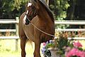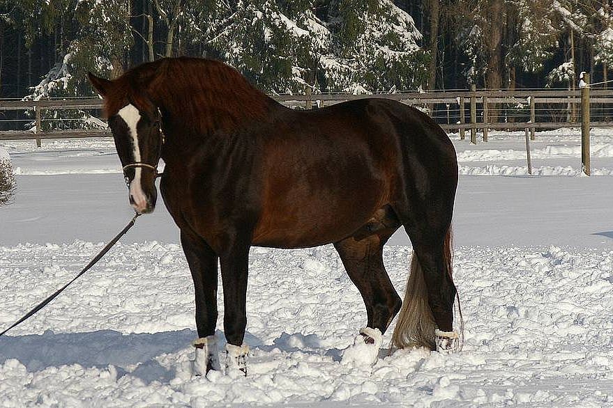 Prometido comes out of a famous champion line, such as morphologic (Sicab) show champions, also an high percentage of excellent dressage horses. He shows both, an exceptional short round morphologic with a deep rump and a very long shoulder, a lot of movements which would make it easy for him to compete against warmbloods. He understands everything in a second, is very fine responding on any helps. Prometido will certrainly also pass his excellent very soft and gentle character to his offspring such as his very nice very dark chestnut colour with one f - flaxen Gene, a combination hard to find again.