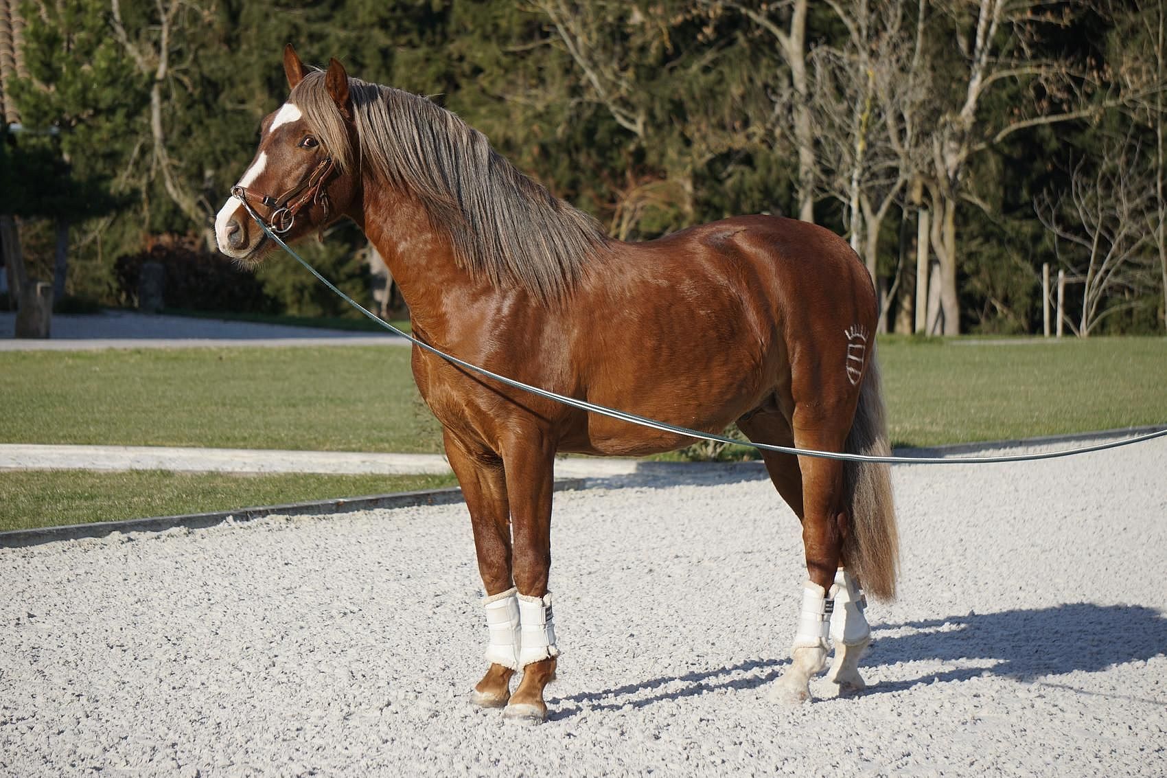 Payo ist YM in seiner reinsten Form, klug, hochsensibel, sportlich ausdauernd und voller Temperament. Er ist der treueste Gefährte, ob im Dressurviereck, auf der Schleppjagd oder täglich im Gelände; einen besseren Partner gibt es nicht. Payo steht nicht im Deckeinsatz, er ist reines Reitpferd und Seele des Gestüts. Er steht als bester Freund zusammen mit Oro auf Paddock und Weide.