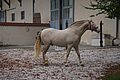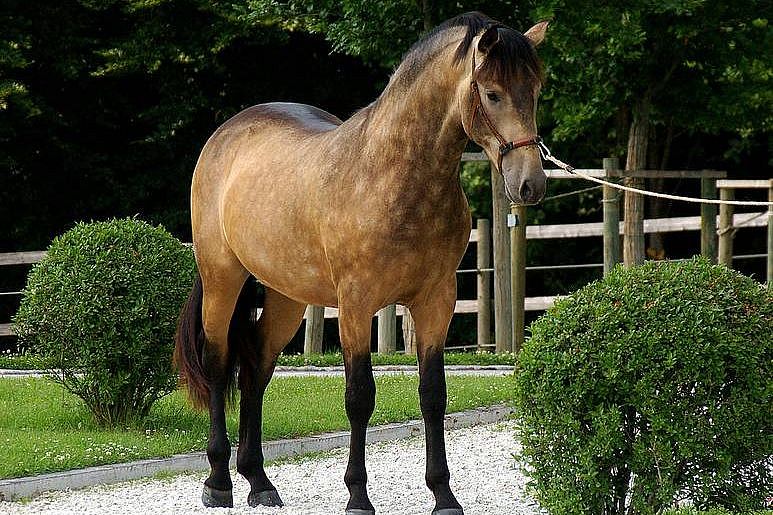 Tarzano GSA - for us the perfection of the PRE - his morphologic is quadradic every angle is just as it should be ( his apto basico notes were all 10 ), a very straight classic side face, a lot of bones combined with handsome gaits makes him just spectalucar. His majestic 173 cm tall size in combination with his outstanding and rare colour and Cartusian YM and Bohorquez bloodlines gives him the attribute of being unique in his breed. He is not selected by his colour; only quality, which he has shown at his first morphologic contest PRECUP 2015 with high punction. He shows us every day by being sweet and gentle, willing and highly trainable that he is and will stay one of the funding stallions of our stud. His genetic is ggEeaaCcrPrlp - Tarzano GSA does not cover foreign mares, we will sell very exclusive offspring in the future, we don´t want to commercialize this rare and unique bloodline. He will continue with hith classical dressage training, will compete at morphologics and dressage competitions.
