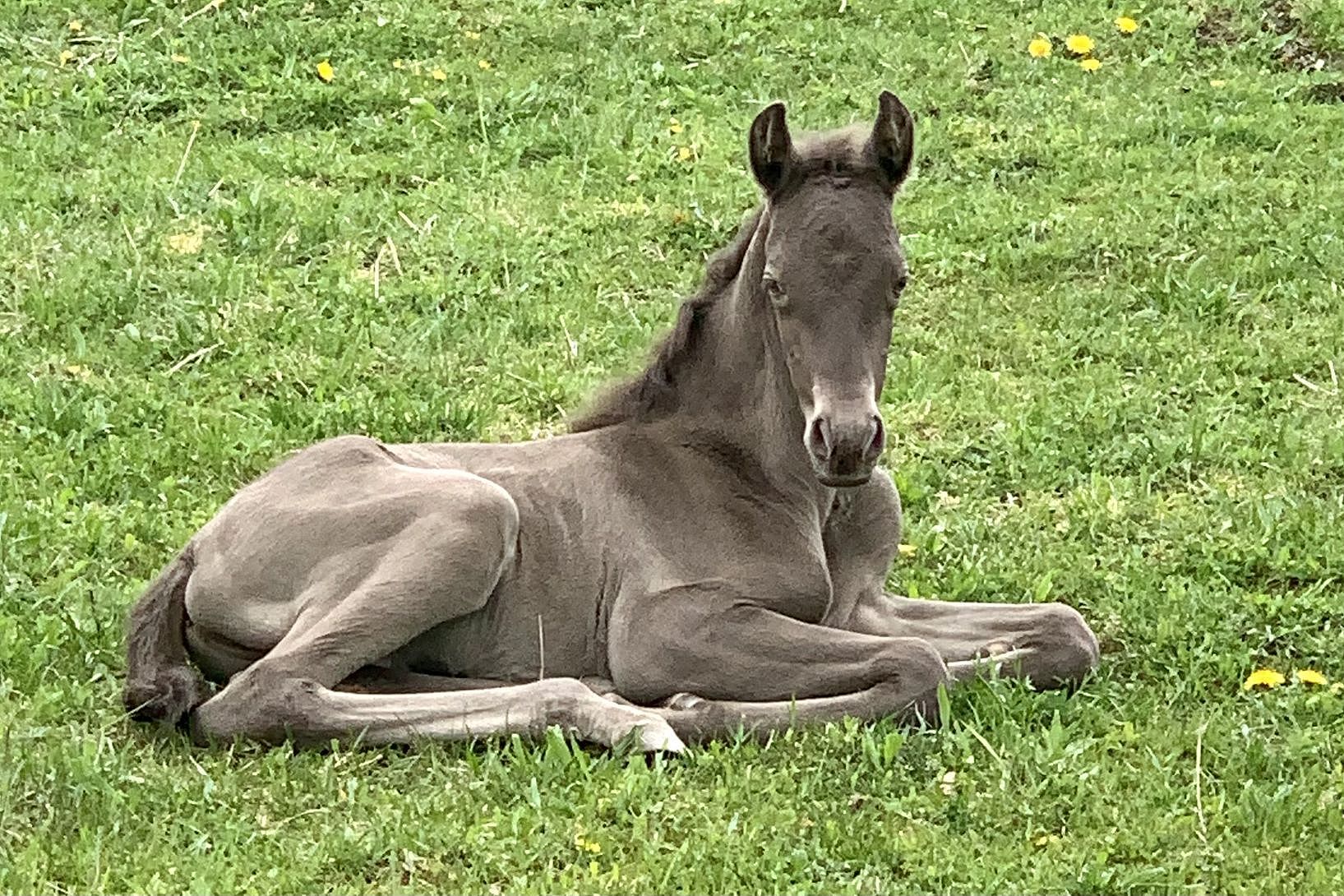 Tobago GSA double pearl black based colt out of 3 generation GSA horses, no inbreed like it is usual in this colour. We selected his grandparents already 10 years ago to realize exactly this perfect little stallion. He is the most clever personality with heavenly sweet character, super uphill movements extremely short and with a deep deep chest. He will become as baroque as all his parents and grandparents are. He will stay as future stallion of course and bring on our dreams, now all fulfilled in him.