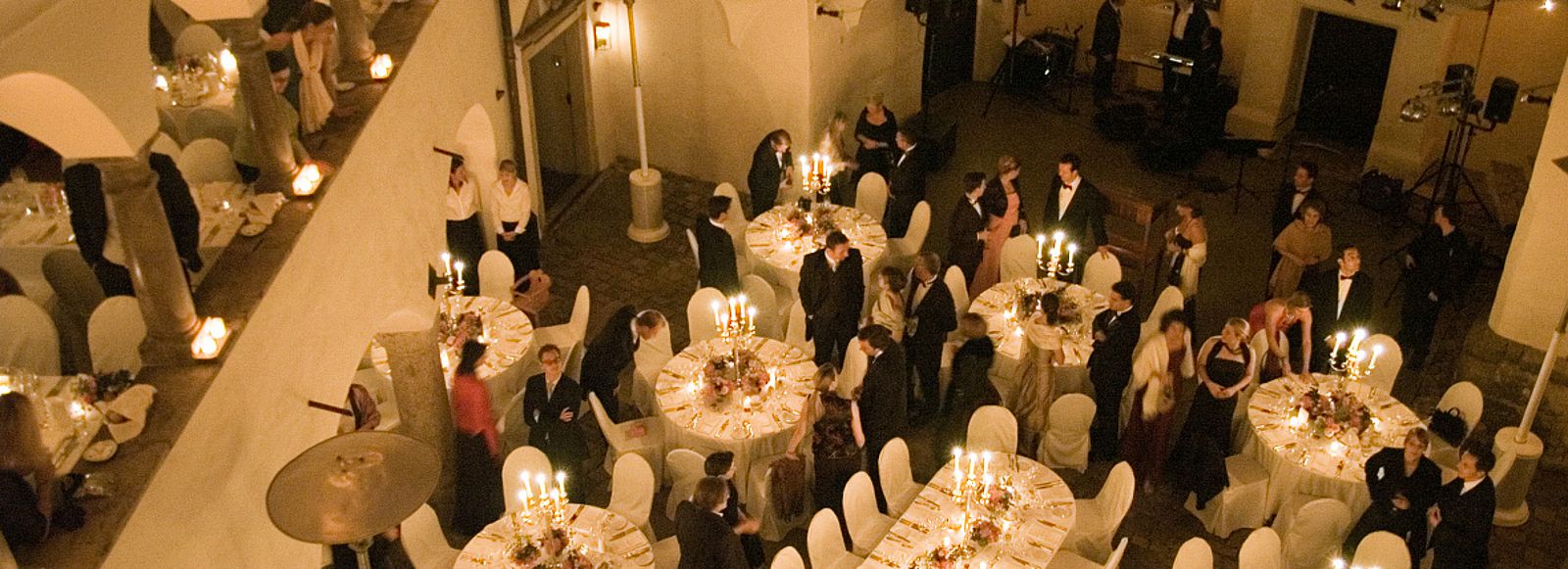 Heiraten und Feiern im Schloss Amerang, das heißt auch Vielfalt und Flexibilität. Feiern Sie bei uns im einzigartigen überdachten Renaissance-Arkadenhof, der zudem beheizt werden kann. Sie werden schwerlich einen so schönen Ort in Oberbayern finden, der für bis zu 240 Personen (Bankett) oder 330 Personen (Konzertbestuhlung) geschaffen ist. Seine 500 Jahre alte Geschichte und seine bauliche Unregelmäßigkeit vermitteln selbst für kleinste und hochexklusive Feiern ein familiäres und intimes Flair, das dem Gast stets das notwendige Gefühl von Privatheit und Vertrautheit gibt. Alternativ können Sie aus fünf Innenräumen zwischen 50 und 150 qm wählen. Unsere wunderschöne Parkanlage bietet ebenfalls ein schönes Ambiente für eine Hochzeit im Freien besonders, wenn Sie in den Frühlingsmonaten oder im Sommer heiraten möchten. In den kühleren Jahreszeiten, in denen das Wetter häufig unberechenbar ist, bietet es sich an, Säle für Hochzeitsfeiern zu mieten. Feiern Sie bei uns im überdachten und beheizten Innenhof mit einer einzigartigen Kapazität von 240 Personen. Der Innenhof - wunderbar passend für 50 bis 330 Personen - ist überdacht und auf angenehme Raumtemperatur geheizt.