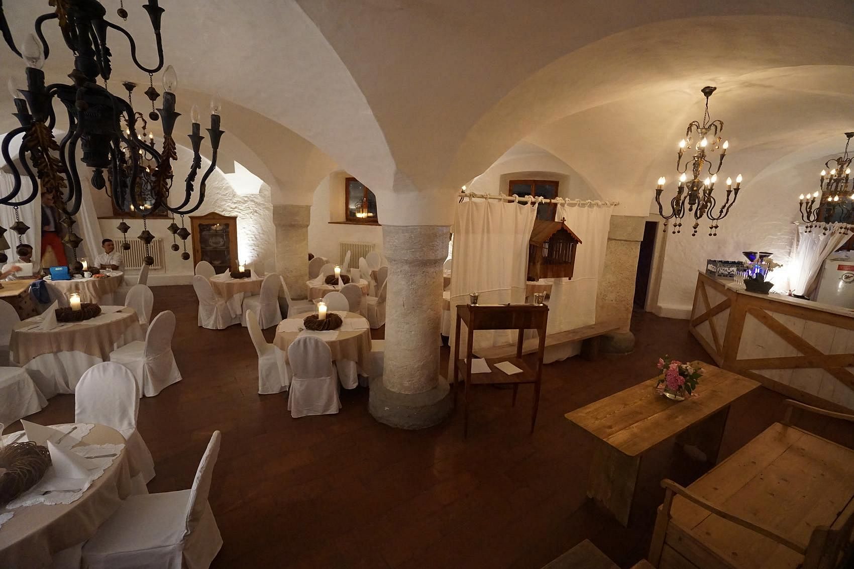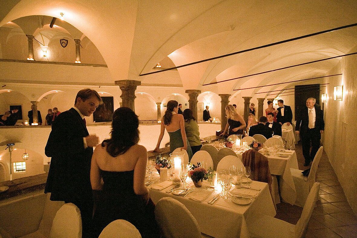 Der Renaissancekeller ist bei den Konzerten sehr beliebt, durch seine dicke Granitsäule vermittelt er eine sehr gemütliche Atmosphere. Da er ebenfalls wie die 3 Säulen Halle an den Innenhof angrenzt ist er bei Hochzeiten ein perfektes Kinderzimmer ,mit Matrazenlager zum kuscheln.