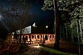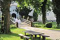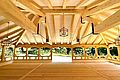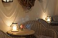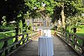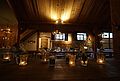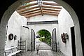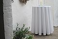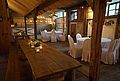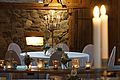 Eingangshalle mit ca 120 qm, für Cocktailempfang, Buffet, Bar, Gaderobe ect... Der weitere Eingangsbereich mit seiner wunderschönen Brücke und nun seit dem 14. Mai 2010 mit dem glasüberdachten Söller erweitert worden. Die spezielle Glaskonstruktion in Verbindung mit ausgewähltem, getrockneten Altholzbalken lässt den Söller in einer völlig neuen Weise erleben, die weder aufgesetzt noch modern ist. Der Besucher empfindet nun den Eingangsbereich als "geschütztem Außenraum", da er durch das Glas sehr hell und offen wirkt. Gleichzeitig geben sich die dicken Balken mit ihrem alten strengen Charakter sehr filigran und nehmen der Konstruktion ihre moderne Schärfe ohne altertümlich und historisierend zu wirken. Somit ergibt sich ein idealer Ort für einen Empfang, der bei schönem Wetter auf der Brücke und bei schlechtem Wetter in der Eingangshalle und im überdachten Söller stattfinden kann.