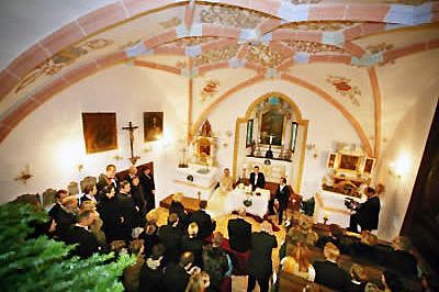 Im Jahre 1997 hervorragend renoviert ist diese spätgotische Kapelle ein Kleinod. Hierin kann man evangelisch, katholisch oder frei heiraten.