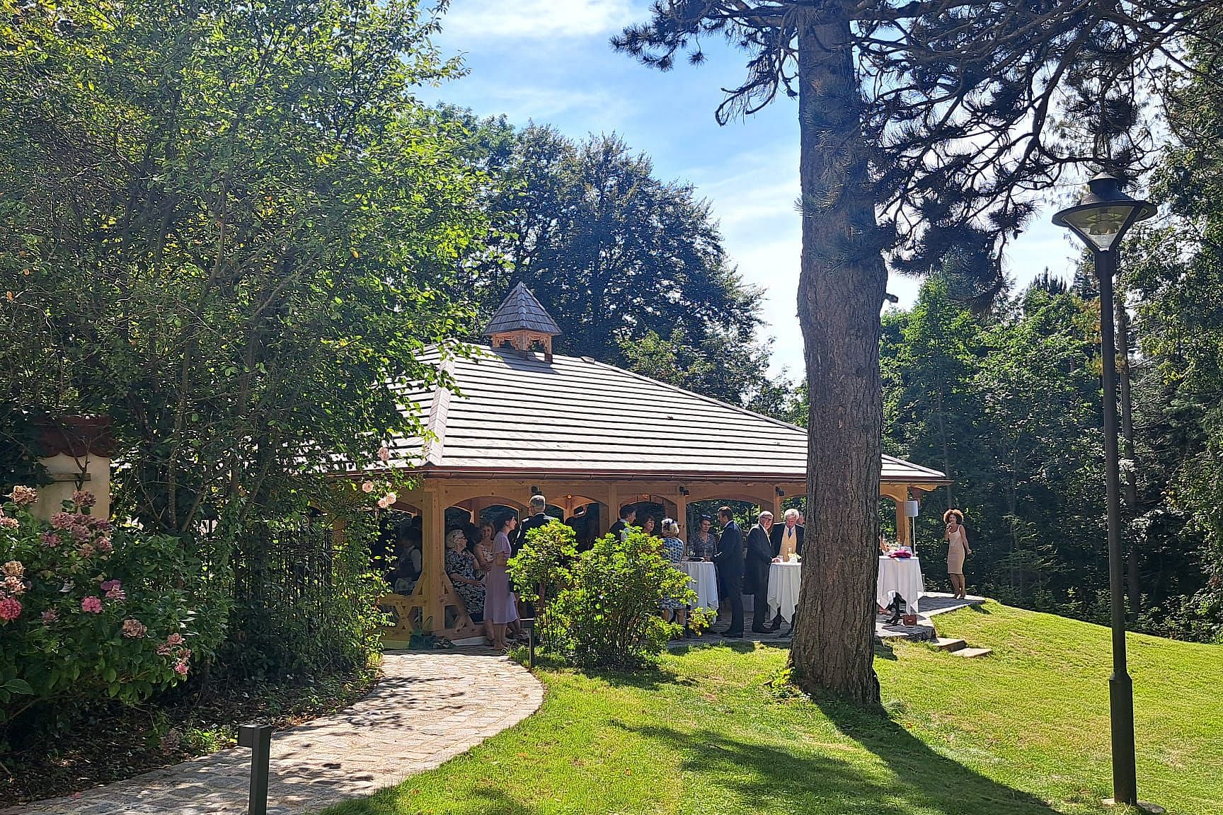 Unser neuer Pavillon ist der perfekte Ort für den schönsten Tag im Leben. Unvergessliche Momente garantiert! Umgeben von der natürlichen Schönheit des Schlossparks, haben Sie die Möglichkeit, Ihre freie Trauung oder einen Empfang in einem eleganten und wetterunabhängigen Ambiente zu erleben. Mit einem zauberhaften Blick auf das Schloss wird Ihr besonderer Tag noch magischer. Lassen Sie sich von der romantischen Atmosphäre verführen und schaffen Sie Erinnerungen, die ein Leben lang halten werden.